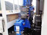 最大の特長は、当社取付のタダノ新型クレーン「ZX294HRSA」です。ワイドアウトリガーの張り出し幅は3.8mと広く、旧モデル比でクレーン性能は約20%アップ。ブームも5角形から7角形となり、強度と安定性、横たわみの性能も向上しています。70kg級の高張力鋼板を用いた一枚板構造のため耐久性も抜群です。