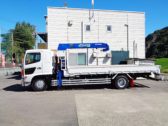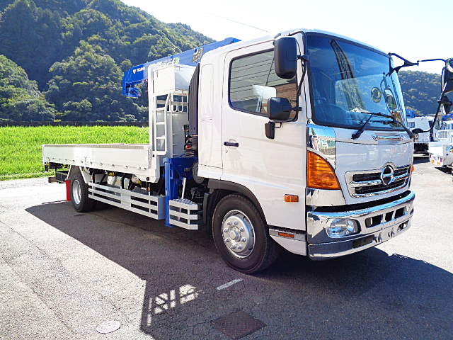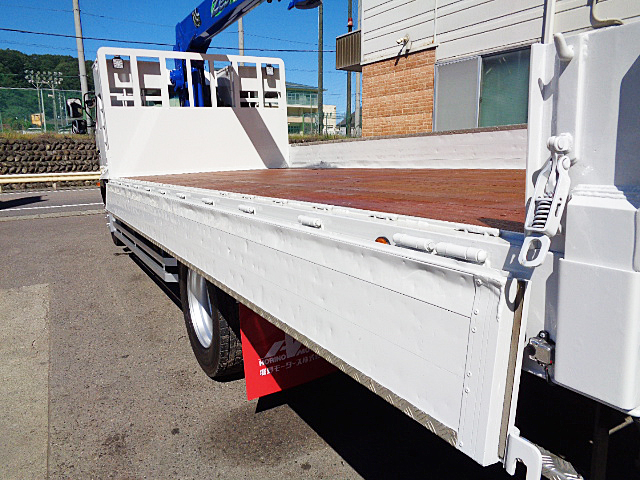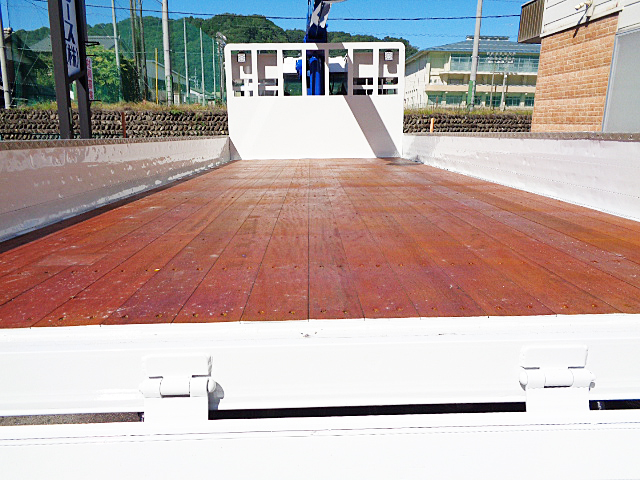 日野レンジャープロ 標準キャブベッド付 詳細】型式:QKG-FE7JLAA / 初年度登録:平成25年2月走行距離は328,000kmと、まだまだ現役でご活躍いただけます。乗車定員は2名。モケットシートを採用し、装備にはオートエアコン、AM/FMラジオ、ETC、助手席側電動格納ミラーなど、快適な車内空間を実現しています。外観は、当社で人気のホワイトで美しく塗装し、スマートな仕上がりです。クレーン部分も塗装済みで、最終仕上げにクリアコートを施し、新品以上のツヤを実現。クレーンは色あせしやすい部分ですが、クリアコートによって美しさを長く保つことができます。荷台は、内寸L555cm×W224cm×H30cmの一番人気の車両サイズで、床板をはじめアピトンフローリングを新品に張り替えました。横ネタはスチール製交換しリノベーション、あおりはアルミブロック仕様。さらに、荷台ロッカーには引き出し式床フックが15対備わっており、荷物の固定も容易です。左右にはセイコーラックを装備しており、あおりの開閉もスムーズに行えます。定番装備も充実し、シャーシも良好な状態で、今後も長くご活躍いただける一台です。装着クレーンはタダノZE364HRES、ワイドアウトリガー・ラジコン(荷重表示あり)・フックインと、人気の高い仕様です。車両本体価格は715万円(税別)。整備代および登録諸費用は別途必要です。ご興味をお持ちの方は、ぜひご連絡ください。(人気車両のため、万が一売約済みの際はご容赦ください)当社では、車両を現状販売するケースは少なく、横ネタやあおり、床材の破損箇所はしっかり修理いたします。クレーンもオイル漏れ対応や年次点検整備を実施し、お客様が新車をご購入いただいたかのような喜びを感じていただけるよう、リノベーションを行い、長くご使用いただける車両をご提供しています。 |